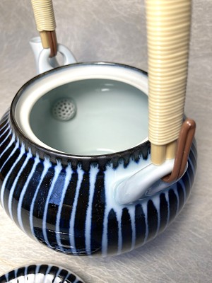 Theekan met blauwe verticale strepen. - ShirobyC